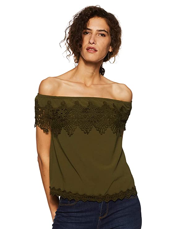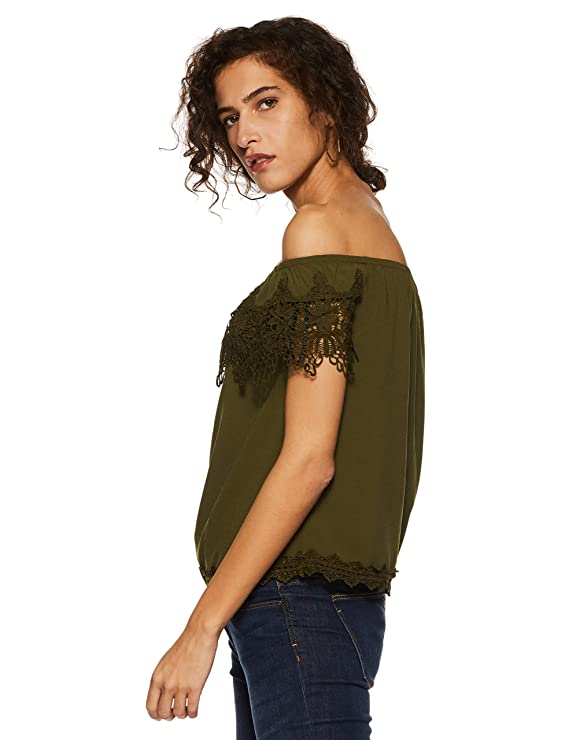 Vero Moda Women Red Lace Short Sleeve Off Shoulder Top